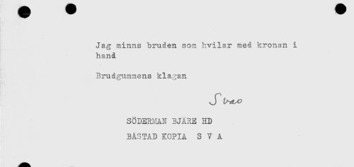 //// Jag minns bruden som hvilar med kronan i //// hand //// Brudgummens klagan //// SÖDERMAN BJÄRE HD //// BÅSTAD KOPIA SVA ////