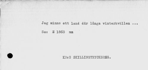 //// Jag minns ett land där långa vinterkvällen ... //// Se: E 1860 mm //// ! //// W KB:S SKILLINGTRYCKSREG. ////
