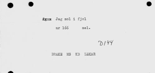 //// V V //// igxm Jag mol i fjol //// nr 166 mel. //// DRAKE MS KB LEKAR ////