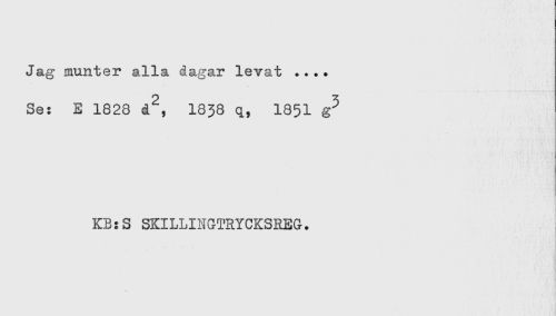 //// Jag munter alla dagar levat .... //// Se: E 182S d^, I838 q, 1851 g^ //// KB:S SKILLINGTRYCKSREG. ////