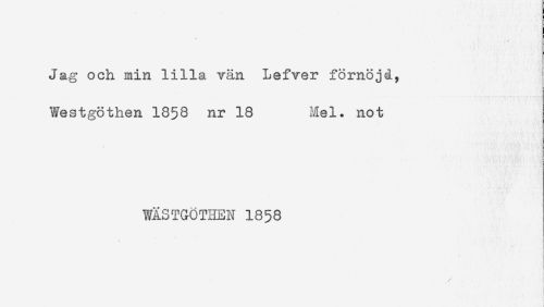 //// t //// Jäg och min lilla vän Lefver förnöjd, //// Westgöthen 1858 nr 18 Mel. not //// WASTGOTHEN 1858 //// . //// ! //// / . ' - < ////