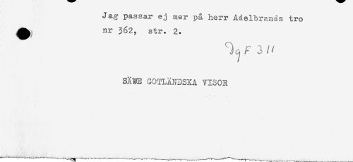 //// Jag passar ej mer på herr Adelbrands tro //// ^ nr 362, str. 2. //// SÄWE GOTLÄNDSKA VIS03 ////
