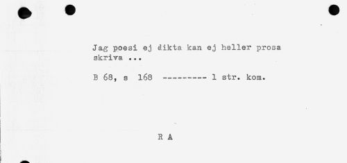 //// t //// Jag poesi ej dikta kan ej heller prosa //// skriva ... //// B 68, s 168 ----1 str. kom. //// * //// *- //// ) //// § ////
