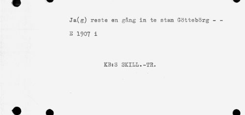 //// Ja(g) reste en gång in te stan Göttebörg - - //// E 1907 i //// KB:S SKILL.-TR. ////