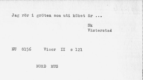 //// - //// Jag rör i gröten sota uti köket är ... //// Sk //// Västerstaå //// EU 8156 Visor II s 121 //// MORD MUS ////