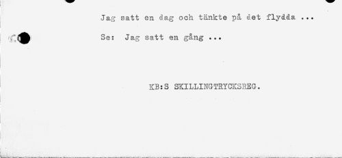 //// Jag satt en dag och tänkte p& det flydda . .. //// Se: Jag satt en g&ng ... //// KB:S SKILLINGTRYCKSREG. ////