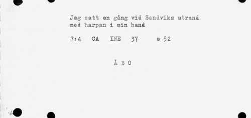 //// Jag satt en gång vid Sandviks strand //// med harpan i min hand //// 7:4 CÅ INE 37 s 52 //// ÅBO //// !- , ////