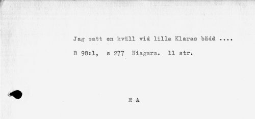 //// ' //// Jag satt en kväll vid lilla Klaras bädd .... //// B 98:1, s 277 Niagara. 11 str. //// ^^ R Å ////