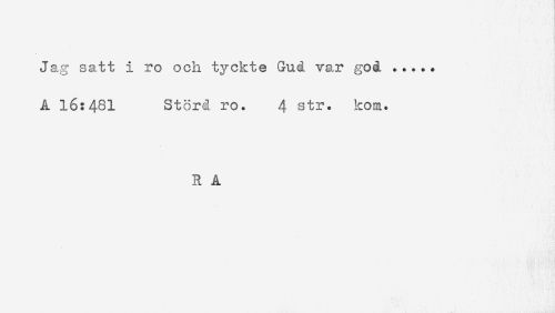 //// Jag satt i ro och tyckte Gud var god ..... //// A 16:431 Störd ro. 4 str. kom. //// R A ////