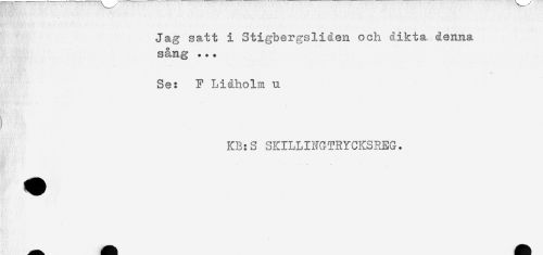 //// Jag satt i Stigbergsliden och dikta denna //// sång ... //// Se: F Liåholm u //// ) //// KR:S SKILLIIiGTRYCKSREG. //// -- <r - ////