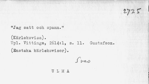 //// "Jag satt och spann." //// (Kärleksvisa). //// Upl. Vittinge, 2614:1, s. 11. Gustafson. //// (Enstaka kärleksvisor). ////