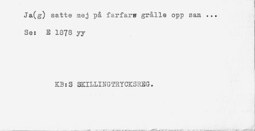 //// Ja(g) satte mej på farfars grålle opp san ... //// Se: E 1878 yy //// KB:S SK1LLINGTRYCKSREG. ////