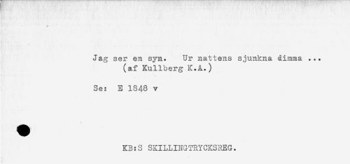 //// Jag ser en syn. Ur nattens sjunkna åimma ... //// (af Kullberg K.Å.) //// Se: E 1848 v //// KB:S SKILLINGTRYCKSREG. ////