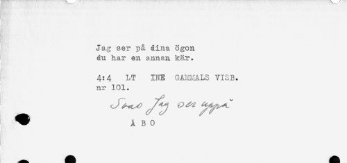 //// . //// ! . . * . - //// Jag ser pa dina ögon //// du har en annan kår. //// 4:4 LT INE GALRIALS VICB. //// nr 101. ////