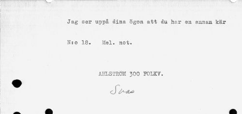 //// * //// - //// Ja.g ser uppå 3ina ögon att åu har en annan kär //// N:o 18. Hel. not. //// * //// AHLSTRÖH 300 FOLKV. //// cj ////