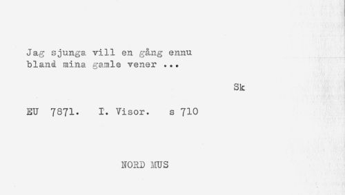 //// Jag sjunga vill en g&ng ennu //// bland mina gamle vener ... //// Sk //// EU 7871. I. Visor. s 710 //// NORD MUS ////
