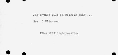 //// Jag sjunga vill en sorglig sång ... //// Se: 0 Eliasson //// KB:s skillingtrycksreg. ////