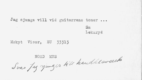 //// ( //// Jag sjunga vill vid guita,rrens toner ... //// Sm //// lekaryd //// Mskpt Visor, EU 33313 //// NORD MUS ^ ////