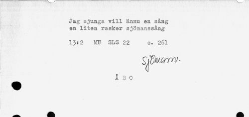 //// Jag sjunga vill ännu en sang //// en liten rasker sjömanssång //// 13:2 MU SLS 22 s. 261 //// o //// ^ ÅBO ////