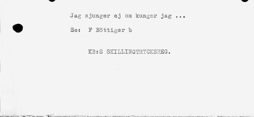 //// Jag sjunger ej om kungar jag ... //// ^ Se: F Bottiger b //// KB:S SKILLINGTRTCKSREG. //// . ////
