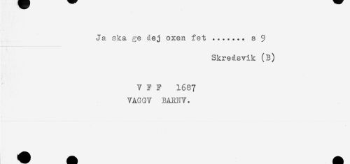 //// Ja ska ge dej oxen fet ....... s 9 //// Skredsvik (B) //// V F F 1687 //// 7AGGV BARNV. ////