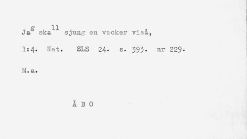 //// - 11 //// Ja^ ska sjung en vacker visa? //// 1:4. Net. SLS 24- s. 3$3. nr 22$. //// M. a. //// ÅBO ////