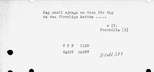 //// Jag skall sjunga en visa för dig //// om den förroliga katten ..... //// s 27. //// Forshälla (B) //// V F F 1120 //// * VA.. V MRNV ////