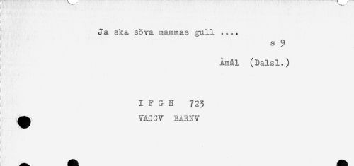 //// Ja ska söva mammas gull .... //// s 9 //// Åmål (Dalsl.) //// I F G H 723 //// ^ VAGGV BARNV //// I--: ' - //// ! ////