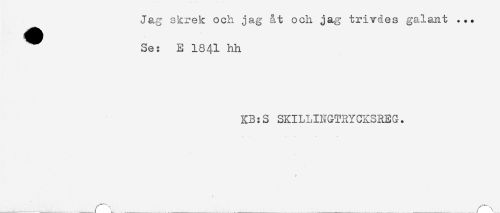 //// Jag skrek och jag åt och jag trivdes galant ... //// ^ Se: E 1841 hh //// KB:S SKILLINGTRYCKSREG. //// _ ' _ _^^ _ _ _ ////