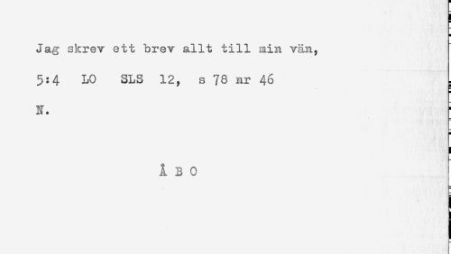 //// < //// Jag skrev ett brev allt till min vän, //// 5:4 LO SLS 12, s 78 nr 46 : //// a //// < //// N. //// ! //// ÅBO //// < ////
