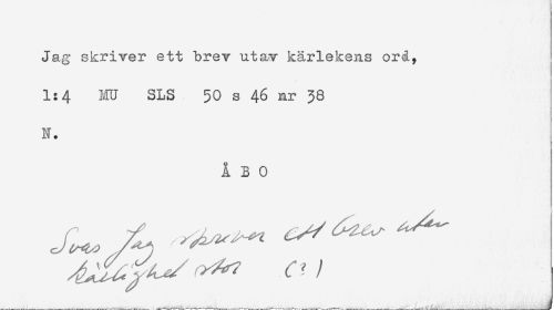 //// Jag skriver ett brev utav kärlekens orå, //// 1:4 MU SLS 50 s 46 nr 38 //// N. //// ÅBO ////