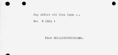 //// Jag skådat uti dina ögon ... //// Se: E 1864 t //// KB:S SKILLINGTRYGKSREG. ////
