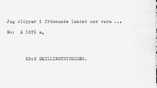 //// H //// H //// Jag slipper i främmande landet mer vara ... //// Se: Z 1876 a, //// i //// H //// H //// ! //// KB:S SKILLINGTRYCKSREG. //// H //// a ////