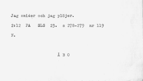 //// Jag smider och jag plöjer. //// 2:12 PÅ SLS 23. s 278-279 nr 119 //// N. //// ÅBO //// - . a ////
