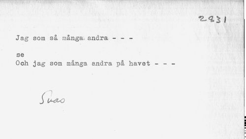 //// Jag som så många., andra - - - //// se //// Och jag som många andra på havet - - - //// i ////