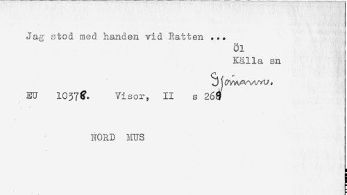 //// Jag stod med handen vid Ratten ... //// Öl //// Källa sn //// EU 1037& Visor, II s 269 //// NORD MUS ////