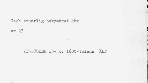 //// ! //// H //// Jagh stoorlig bekymbrat ähr //// nr 27 //// < //// ^ E //// < //// VISBÖCKER 15- o. 1600-talens ÄLF ' //// / ////