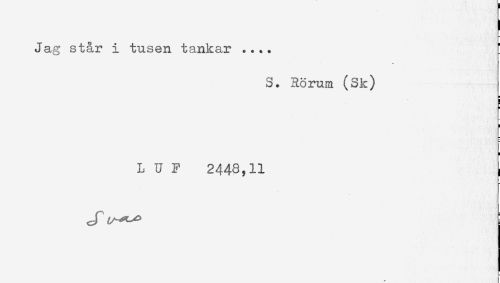 //// Jag står i tusen tankar .... //// S. Rörum (Sk) //// . //// LUF 2448,11 i //// cf ////