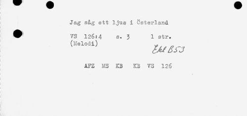 //// ] //// f < //// ! //// ! +.„ //// ! Jag såg ett ljus i Osterland //// ^ VS 126:4 s. 3 1 str. //// (Melodi) ^ //// AFZ MS KB KB VS 126 //// I ' -' . ' //// < ////