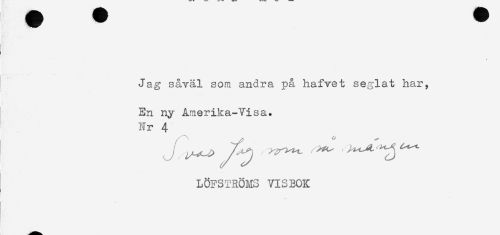 //// I ' //// Jag såväl som andra på hafvet seglat har, //// En ny Amerika-Visa. //// Nr 4 //// LÖFSTRÖMS VISBOK ////