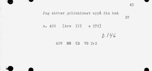 //// 49 //// Jag sätter guldskinnet uppå din knä //// D? //// s. 422 (Arw III s 372) //// ARW MS KB VS 2:2 //// \ ////