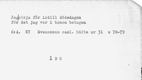 //// Jagjsörja f&r intill dödedagen //// för det jag var i honom betagen //// 6:4* KY Svenssons saml. häfte nr 31 s 78-79 //// ÅBO //// s ////