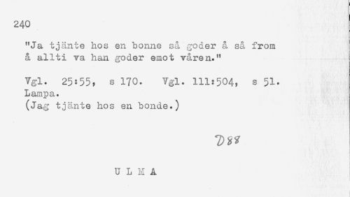 //// "Ja tjänte hos en bonne så göder å så from //// å allti va han göder emot våren." //// Vgl. 25:55? s 170. Vgl. 111:504, s 51. //// Lampa. //// (Jag tjänte hos en bonde.) ////