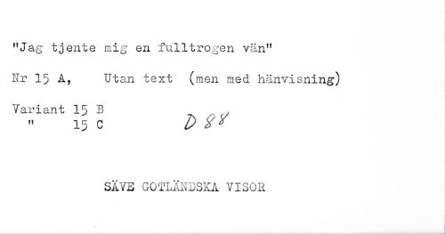 //// "Jag tjente mig en fulltrogen vän" //// Nr 15 A, Utan text (men med hänvisning) //// Variant 15 B ^ ^ //// " 15 C Z> //// SÄVE GOTLÄNDSKA VISOR ////