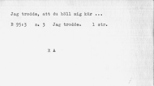 //// Jag trodde, att du höll mig kår ... //// B 95:3 s. 3 trodde. 1 str. //// R A //// * ////
