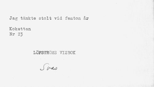 //// Jag tänkte stolt vid femton år //// Kokettan //// Nr 23 //// LÖFSTROMS VISBOK ////