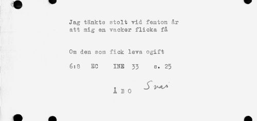 //// Jag tänkte stolt vid femton Ar //// att mig en vacker flicka få //// Om den som fick leva ogift //// 6:8 EC INE 33 s. 25 //// A B 0 ////