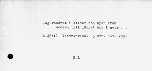 //// . ' . . . ' ^ ' ' , . . . , ' . //// i . //// ) ('< ' ' ' . . . . s ' * ' . ' . * ' ' / < ? t < - //// !'' ' ' //// ! //// , .... . . ^ . ^ //// Jag vandrat i städer och byar från //// södern till längst upp i norr ... //// ' < - - ... ..... ... //// A 454:1 Vandrarvisa. 5 str. not. kom. ////