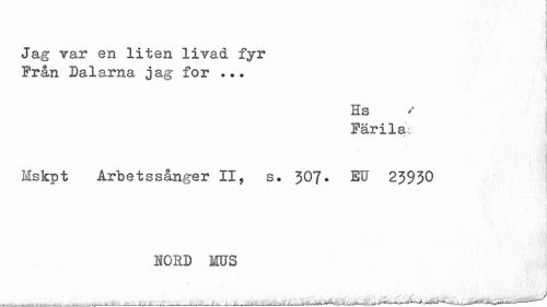 //// I //// Jag Tar en liten livad fyr Från Dalarna jag for //// • ii //// Hs //// Farila. i //// ¦ //// Mskpt Arbe t a sånger II, s. 307» EU 23950 //// HORD MUS //// ___g^h___... ;___,___ji,__,-,_jLi___^___--- Ji/iii ^jtAJ***--^^^-^csJ"^,-.-** ' ~ ^ ////