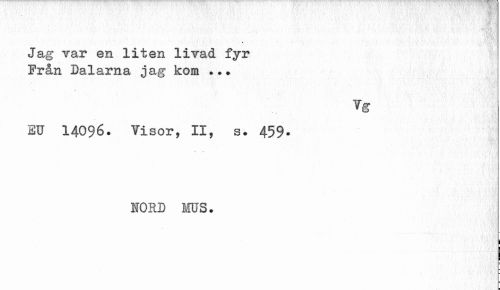 //// _ //// t //// Jag var en liten liTad fyr Från Dalarna jag kom //// Vg //// EU 14096. Visor, II, s. 459. //// HORD MUS. ////
